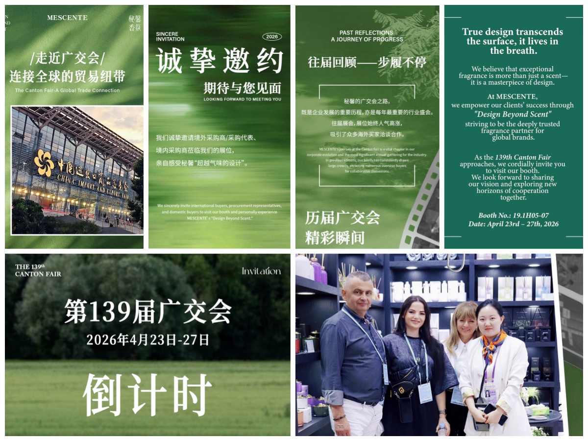 We are thrilled to extend a warm invitation to you to visit MESCENTE at the 139th Canton Fair - a premier global trading event that connects businesses worldwide. As a leading expert in home fragrance design and manufacturing, we are delighted to showcase our latest innovations and premium products to you at the fair.