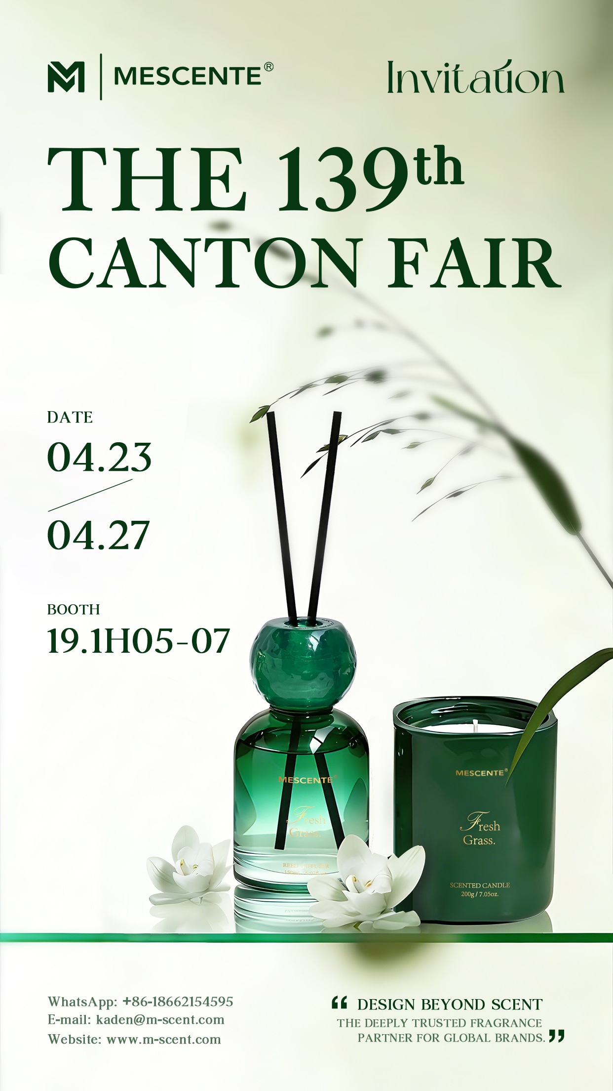 We are thrilled to extend a warm invitation to you to visit MESCENTE at the 139th Canton Fair - a premier global trading event that connects businesses worldwide. As a leading expert in home fragrance design and manufacturing, we are delighted to showcase our latest innovations and premium products to you at the fair.